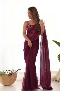 Experience regal beauty with this embroidered saree. Choose between unstitched and pre-pleated options with a blouse. Free shipping over $99, easy USA returns, and customization available!
